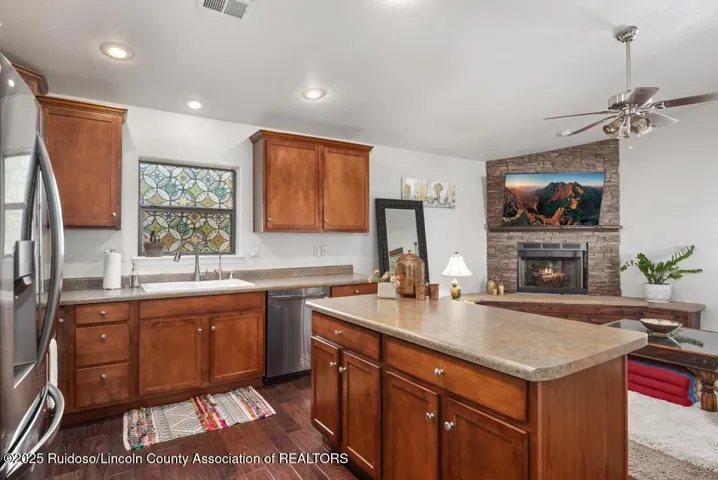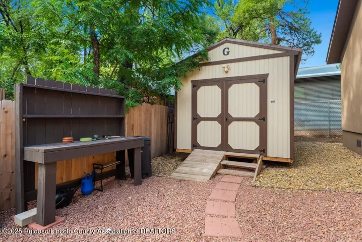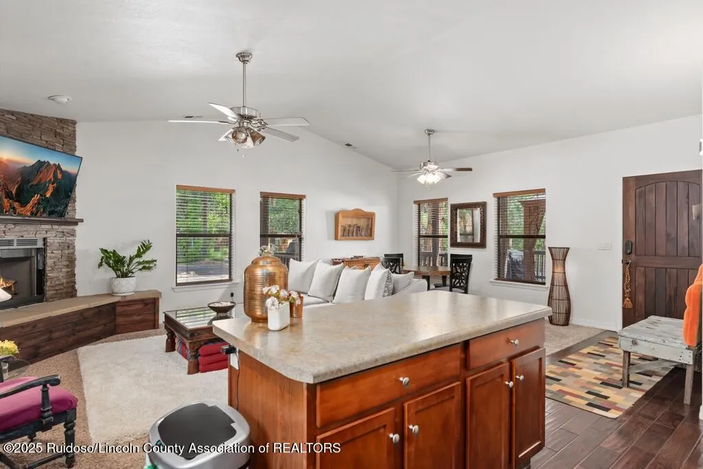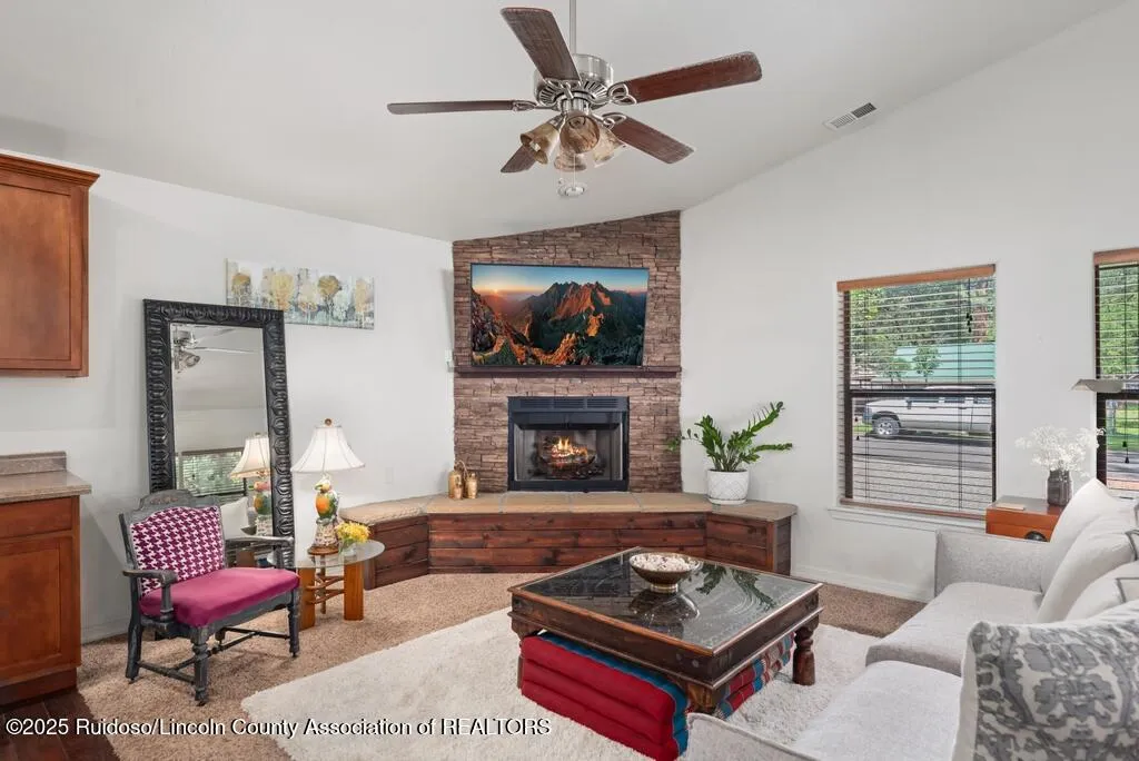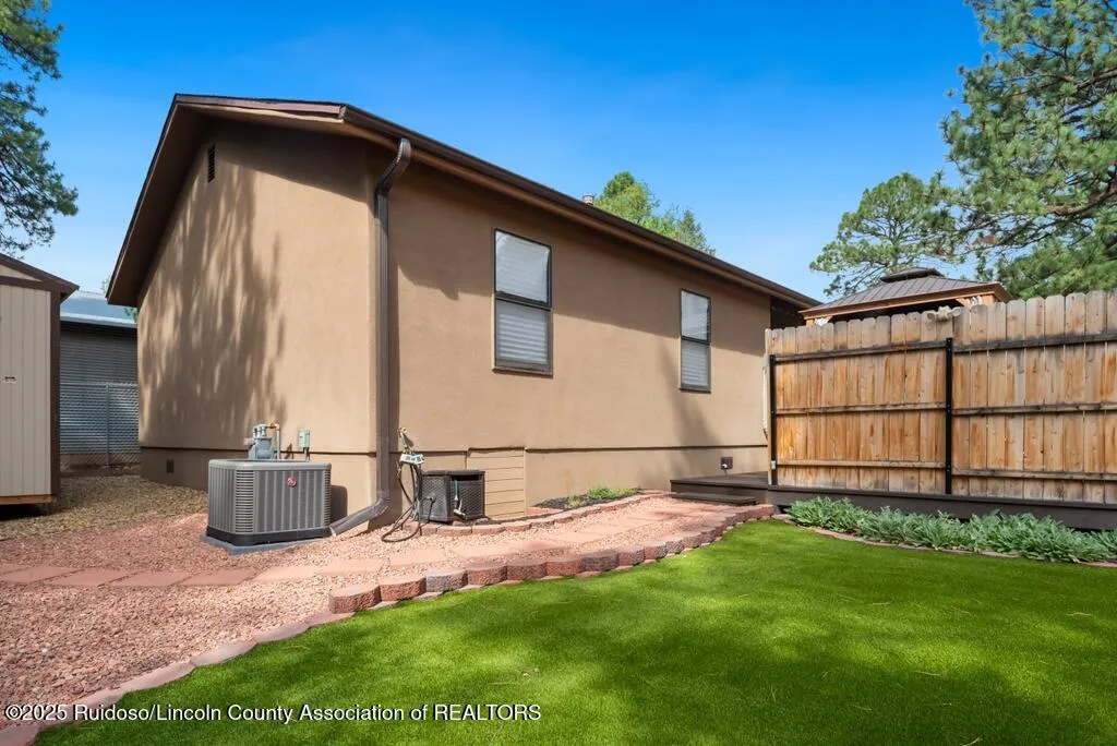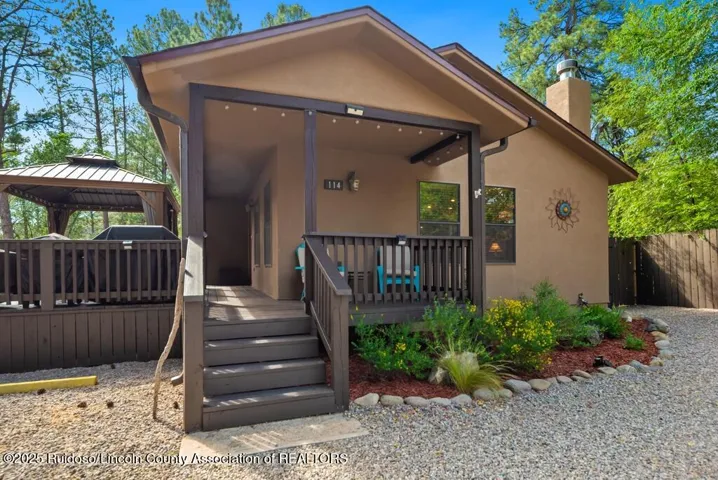 Nestled in the cool, crisp mountains of Sierra Blanca, this adorable 2-bedroom, 2-bathroom home in Ruidoso, New Mexico, is the perfect blend of cozy comfort and mountain charm. Tucked away in a serene, pine-studded neighborhood, this inviting retreat offers a peaceful escape with modern conveniences, ideal for a weekend getaway or year-round living.Step inside to discover a warm, open-concept living space with a stone fireplace that serves as the heart of the home. Hot tub included as well as a storage shed!